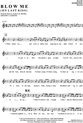 Blow Me (One Last Kiss) - Sheet Music for flute Pink