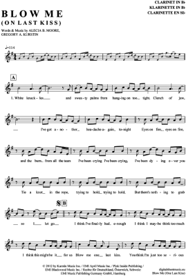 Blow Me (One Last Kiss) - Sheet Music for clarinet in B flat Pink