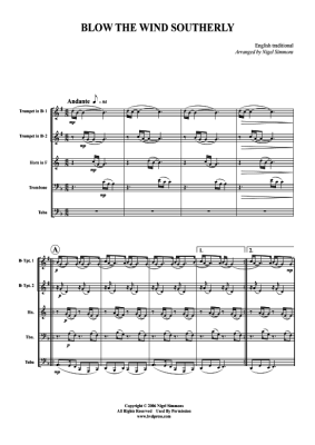 Blow the Wind Southerly - Sheet Music for Brass quintet traditional (arr. Simmons)