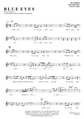 Blue Eyes - Sheet Music for recorder Elton John