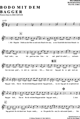 Bodo Mit Dem Bagger - Sheet Music for recorder Mike Krüger