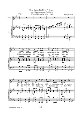 Böse-Buben-Lied - Sheet Music for piano + underlaid text Hardy Kickers