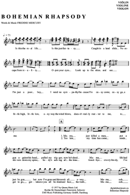 Bohemian Rhapsody - Sheet Music for violin Queen