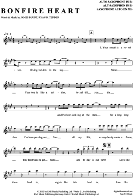 Bonfire Heart - Sheet Music for Alto Saxophone James Blunt