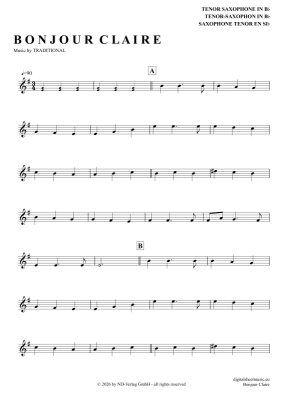 Bonjour Claire - Sheet Music for Tenor Saxophone Traditional