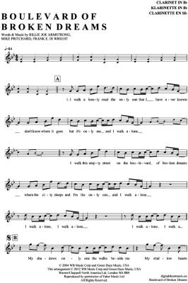 Boulevard of broken dreams - Sheet Music for Clarinet in B-flat Green Day