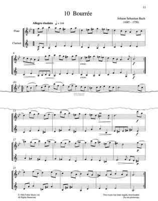 Bourrée, composed by Johann Sebastian Bach and arranged by Paul Harris for flute and clarinet duet in digital sheet music format.