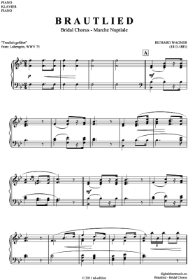 Brautlied - Treulich geführt - Hochzeitsmarsch - Sheet Music for Piano Solo Richard Wagner (aus: Lohengrin, WVV 75)