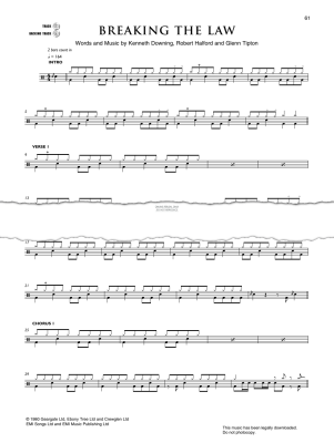 Breaking The Law, as recorded by Judas Priest. Arranged for voice with drum chart in digital sheet music format.