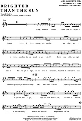 Brighter than the sun - Sheet Music for Alto Saxophone Colbie Callait