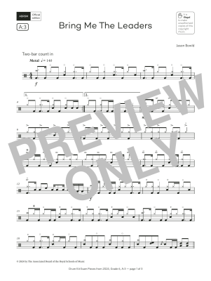 Bring Me The Leaders (Grade 6, list A3, from the ABRSM Drum Kit Syllabus 2024) - Sheet Music for Jason Bowld