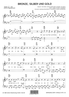 Bronze, Silber und Gold - Sheet Music for Piano and Voice Wolfgang Petry