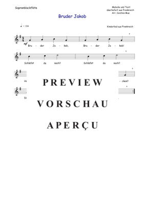 Bruder Jakob (G - Dur) - Sheet Music for soprano recorder solo Traditional