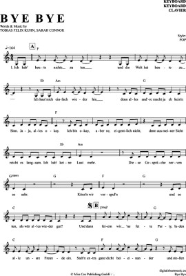 Bye Bye - Sheet Music for Keyboard Sarah Connor