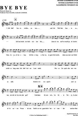 Bye Bye - Sheet Music for Tenor Saxophone Sarah Connor