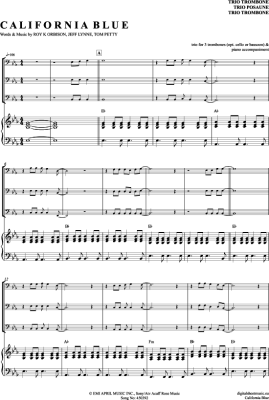 California Blue - Sheet Music for Trombone Trio + Piano Roy Orbison