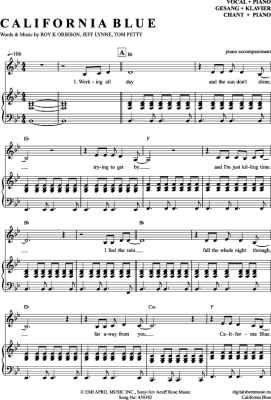 California Blue - Sheet Music for Voice with Piano Accompaniment Roy Orbison