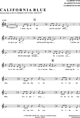 California Blue - Sheet Music for Clarinet in B-flat Roy Orbison