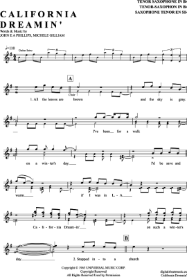 California Dreamin´ - Sheet Music for Tenor Saxophone Mamas & Papas