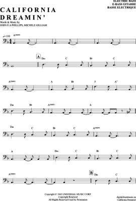 California Dreamin´ - Sheet Music for Bass Guitar Mamas & Papas