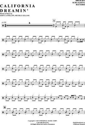 California Dreamin´ - Sheet Music for Drums Mamas & Papas