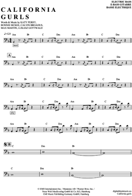California gurls - Sheet Music for Bass Guitar Katy Perry feat. Snoop Dogg