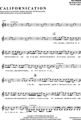 Californication - Sheet Music for recorder Red Hot Chili Peppers