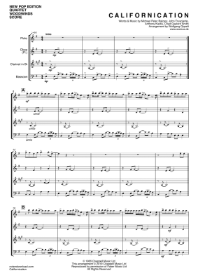 Californication - Sheet Music for Woodwind Quartet Red Hot Chili Peppers