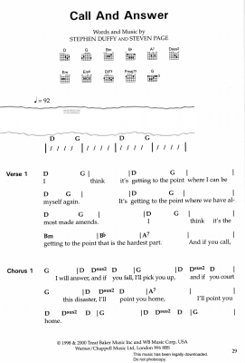 Call And Answer, as performed by Barenaked Ladies, arranged for chord songbook with words and guitar chords and available to print instantly at home.