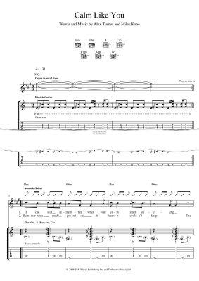 Calm Like You, by The Last Shadow Puppets from their debut studio album, The Age Of The Understatement. Arranged for guitar tablature; available to print instantly at home in digital sheet music format.