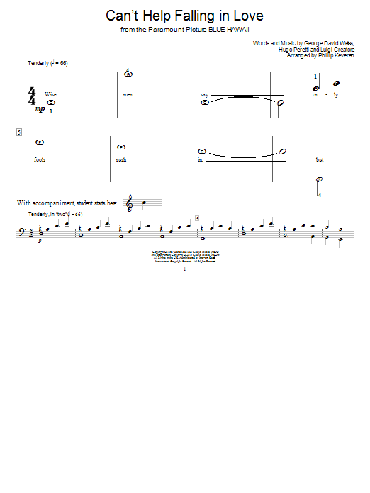 Can't Help Falling In Love (arr. Phillip Keveren) (Educational Piano)