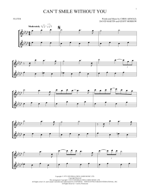 Can't Smile Without You - Sheet Music for Barry Manilow