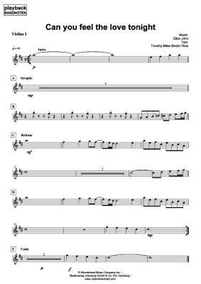 Can you feel the love tonight - Violine 1 - Sheet Music for Elton John