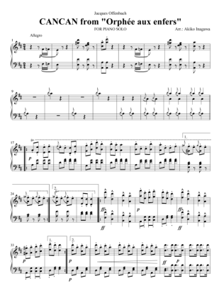 CANCAN from Orphée aux enfers - Sheet Music for Piano Solo Jacques Offenbach (arr. A. Inagawa)