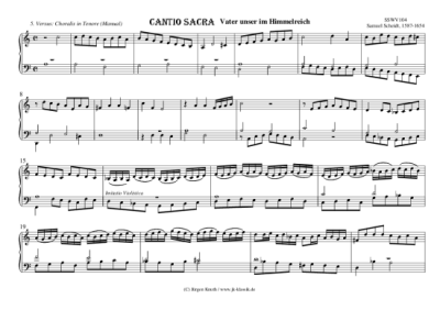 CANTIO SACRA Vater unser im Himmelreich, 5. Versus: Choralis in Tenore (Manual) - Sheet Music for Organ Solo Samuel Scheidt, 1587-1654