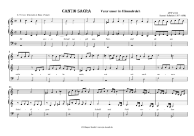 CANTIO SACRA Vater unser im Himmelreich, 6. Versus: Choralis in Basi (Pedal) - Sheet Music for Organ Solo Samuel Scheidt, 1587-1654