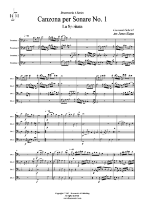 Canzona per Sonare Nr. 1 - La Spiritata - Sheet Music for Trombone Quartet Giovanni Gabrieli
