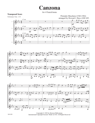 Canzona - Sheet Music for 4 horns Florentio Maschera