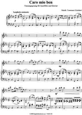 Caro mio ben - Sheet Music for flute + piano Tommaso Giordani (Trauungsgesang)