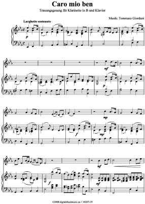 Caro mio ben - Sheet Music for clarinet in Bb + piano Tommaso Giordani (Trauungsgesang)