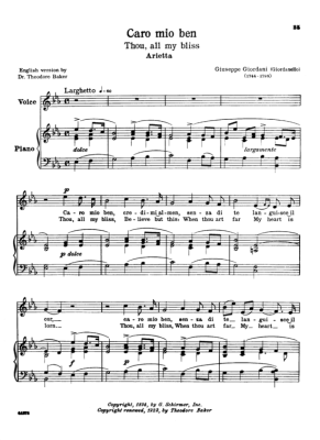 Caro mio ben - Sheet Music for Medium Voice and Piano Giuseppe Giordani