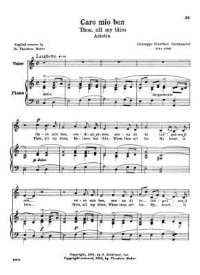 Caro mio ben - Sheet Music for Low Voice and Piano Giuseppe Giordani