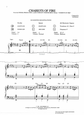 The theme from Chariots Of Fire, composed by Vangelis, and arranged for organ solo.