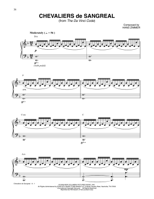 Chevalier De Sangreal (from The Da Vinci Code) - Sheet Music for Hans Zimmer