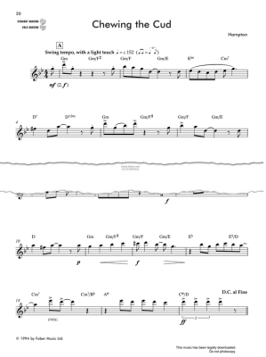 Chewing The Cud, written by Andy Hampton and arranged for flute with piano accompaniment in digital sheet music format. This piece is presented with extra helpful soloing guides to create authentic jazz solos.