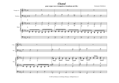 Choral - Sheet Music for trumpet in C, trombone + organ Germaine Tailleferre