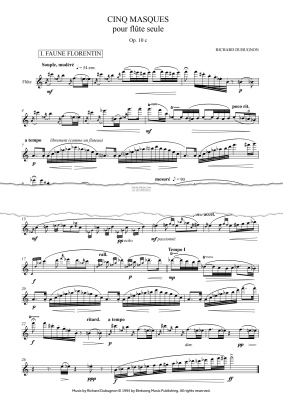 Cinq MasquesΒ Op. 10 for Flute Solo by Richard Dubugnon