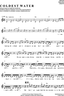 Coldest Water - Sheet Music for vocals Walking On Cars