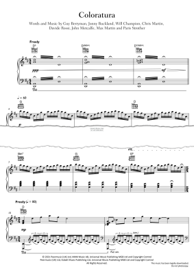 Coloratura, as recorded by Coldplay. Arranged for piano and voice with guitar chords in digital sheet music format.