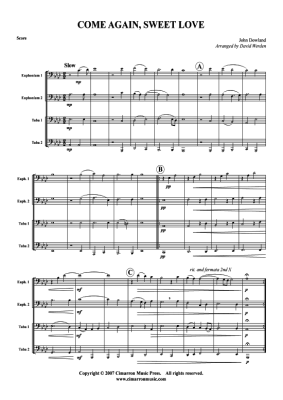 Come Again, Sweet Love - Sheet Music for Tuba Quartet: 2x Baritone, 2xTuba John Dowland